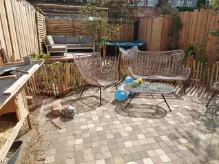 Zie hier links hoe de tuin een heerlijke habitat biedt voor de konijnen en de familie tot rust kan komen achterin de tuin op een verhoogde vlonder onder de pergola. De tuin is opgebouwd uit verschillende houtsoorten; douglas, kastanje en perzikpitten. De natuurstenen van het terras zijn overgenomen van een eerdere gebruiker en de bodem is gevoed met lokaal geproduceerde meststoffen. Smaak voor Groen heeft een prachtig project mogen verzorgen met tevredenheid van de tuineigenaren.
