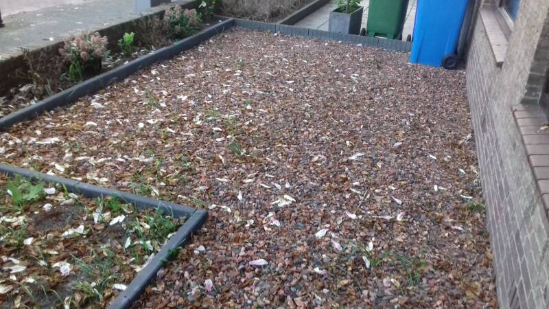 #4; Hergebruik van grindtegels en aanleg van wildverband en flagstones